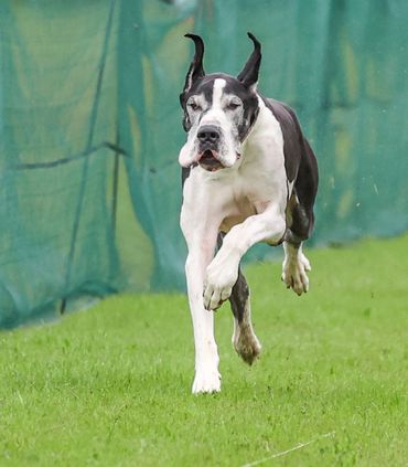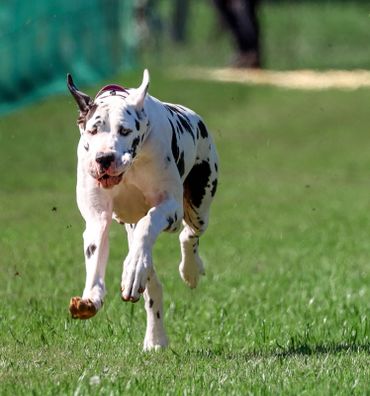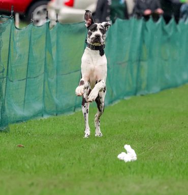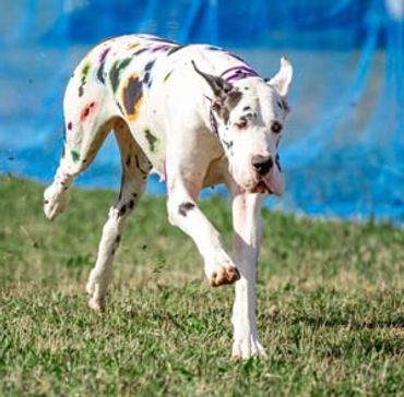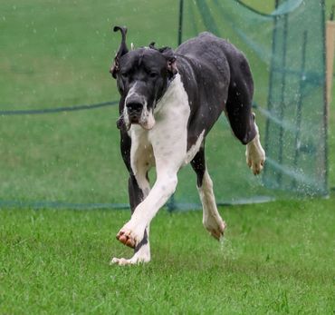 I cannot imagine an expression for a dane more joyful than that of a FastCat run. There are jowls. There is slobber. There are teeth and lips and feet. We may be big, but we are surprisingly quick. We host any breed at these trials. However, many an onlooker will tell you, it's a pleasure to see a giant breed run. For whatever reason, it seems forgotten that the dane is a working breed. Please enjoy the photos of group members and those performing.